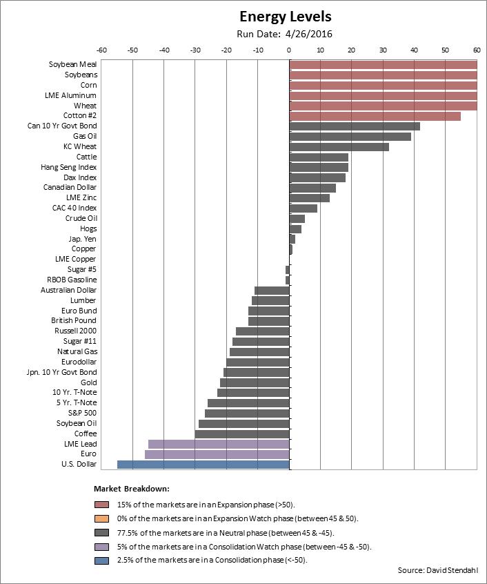 Note: The Energy Level chart does not provide buy sell signals … it simple lists markets that are in a consolidation or expansion mode.