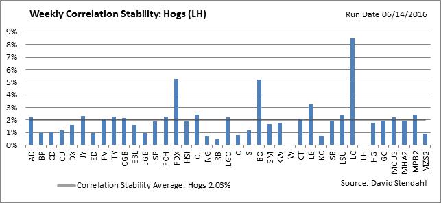 For current correlation charts for Lean Hogs … scroll down to the individual sectors covering a total of forty global futures markets.