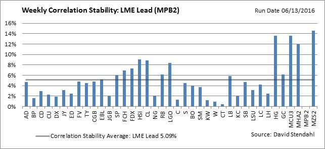 For current correlation charts for LME Lead … scroll down to the individual sectors covering a total of forty global futures markets.